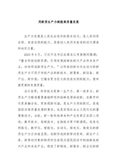 【七哥公文】2024年:用新质生产力赋能高质量发展+更多免费公文+VX:QiGeGongWen2024