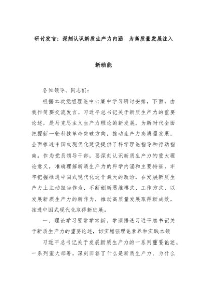 【七哥公文】2024年:研讨发言:深刻认识新质生产力内涵 为高质量发展注入新动能+更多免费公文+VX:QiGeGongWen2024