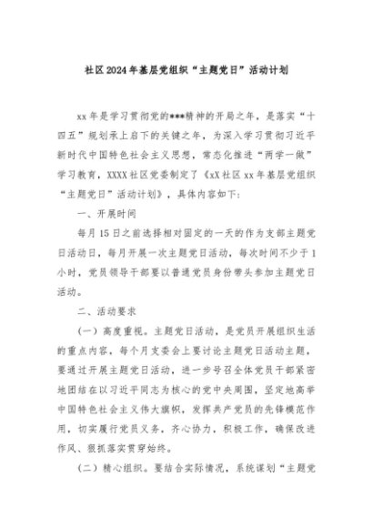 / 【七哥公文】2024年:社区2024年基层党组织“主题党日”活动计划+更多免费公文+VX:QiGeGongWen2024