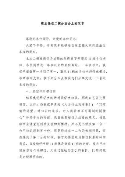 【七哥公文】2024年:班主任在二模分析会上的发言+更多免费公文+VX:QiGeGongWen2024