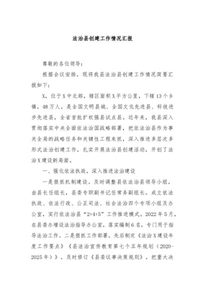 / 【七哥公文】2024年:法治县创建工作情况汇报+更多免费公文+VX:QiGeGongWen2024