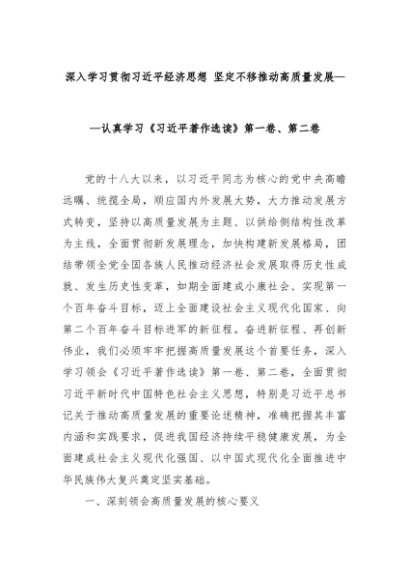 【七哥公文】2024年:深入学习贯彻习近平经济思想 坚定不移推动高质量发展——认真学习《习近平著作选读》第一卷、第二卷+更多免费公文+VX:QiGeGongWen2024