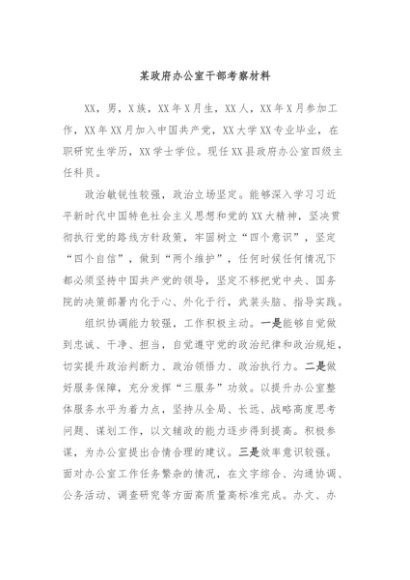 / 【七哥公文】2024年:某政府办公室干部考察材料+更多免费公文+VX:QiGeGongWen2024