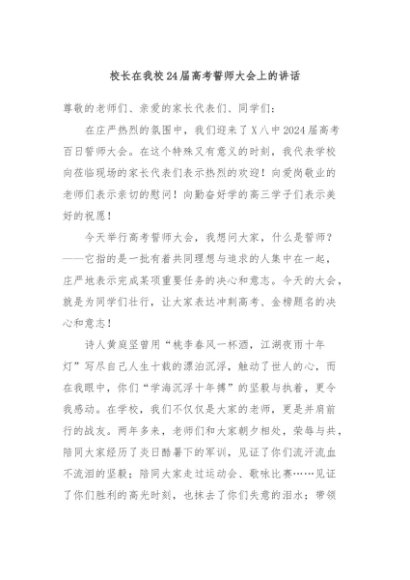 / 【七哥公文】2024年:校长在我校24届高考誓师大会上的讲话+更多免费公文+VX:QiGeGongWen2024
