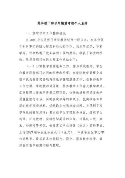 / 【七哥公文】2024年:某科级干部试用期满考核个人总结+更多免费公文+VX:QiGeGongWen2024