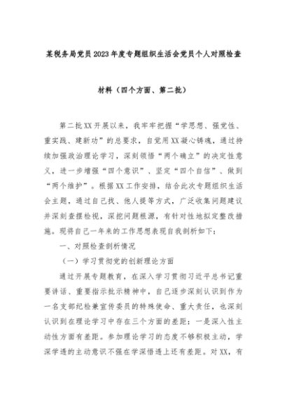 【七哥公文】2024年:某税务局党员2023年度专题组织生活会党员个人对照检查材料(四个方面、第二批)+更多免费公文+VX:QiGeGongWen2024
