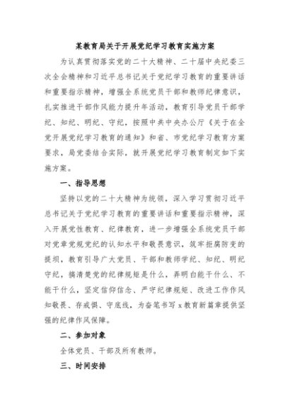 / 【七哥公文】2024年:某教育局关于开展党纪学习教育实施方案+更多免费公文+VX:QiGeGongWen2024
