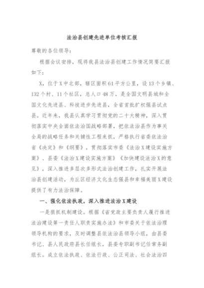 / 【七哥公文】2024年:法治县创建先进单位考核汇报+更多免费公文+VX:QiGeGongWen2024