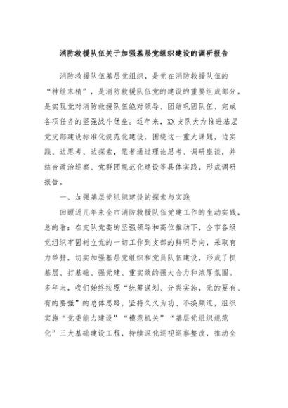 / 【七哥公文】2024年:消防救援队伍关于加强基层党组织建设的调研报告+更多免费公文+VX:QiGeGongWen2024