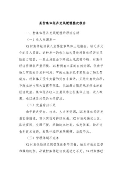 / 【七哥公文】2024年:某村集体经济发展缓慢整改报告+更多免费公文+VX:QiGeGongWen2024