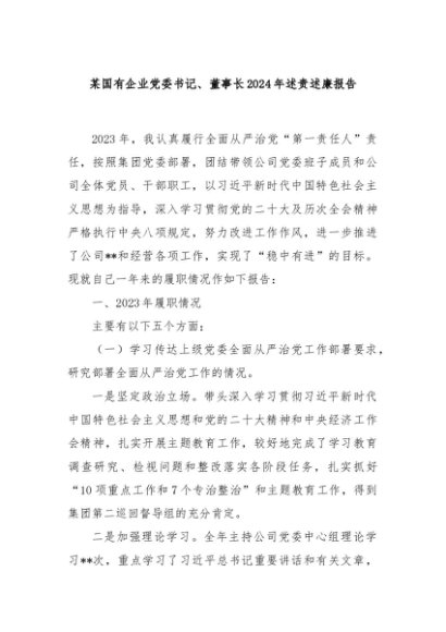 / 【七哥公文】2024年:某国有企业党委书记、董事长2024年述责述廉报告+更多免费公文+VX:QiGeGongWen2024