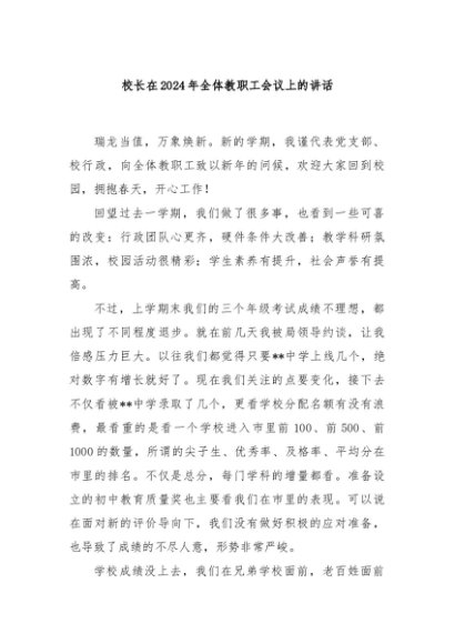 / 【七哥公文】2024年:校长在2024年全体教职工会议上的讲话+更多免费公文+VX:QiGeGongWen2024