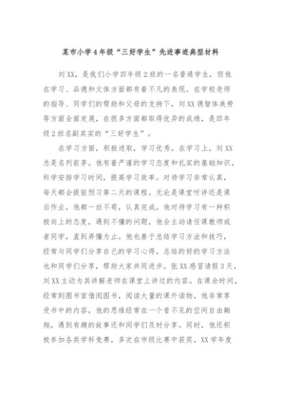 / 【七哥公文】2024年:某市小学4年级“三好学生”先进事迹典型材料+更多免费公文+VX:QiGeGongWen2024