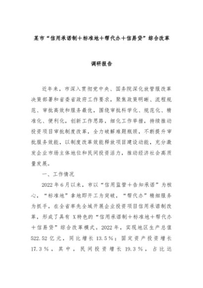 【七哥公文】2024年:某市“信用承诺制+标准地+帮代办+信易贷”综合改革调研报告+更多免费公文+VX:QiGeGongWen2024
