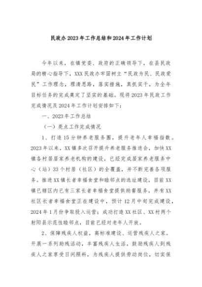 / 【七哥公文】2024年:民政办2023年工作总结和2024年工作计划+更多免费公文+VX:QiGeGongWen2024