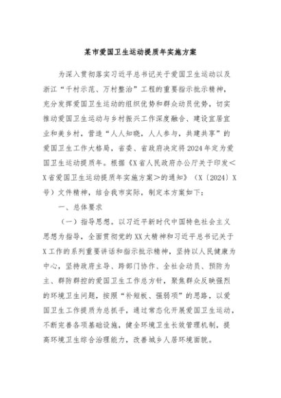 / 【七哥公文】2024年:某市爱国卫生运动提质年实施方案+更多免费公文+VX:QiGeGongWen2024