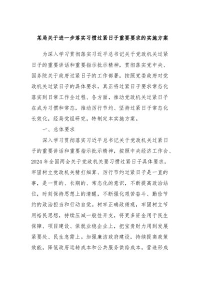 / 【七哥公文】2024年:某局关于进一步落实习惯过紧日子重要要求的实施方案+更多免费公文+VX:QiGeGongWen2024