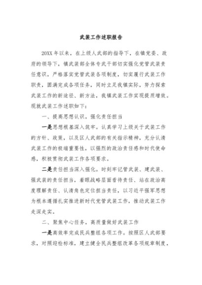 / 【七哥公文】2024年:武装工作述职报告+更多免费公文+VX:QiGeGongWen2024