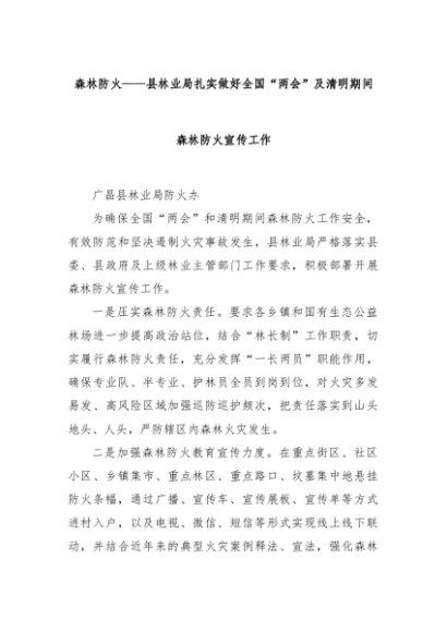 【七哥公文】2024年:森林防火——县林业局扎实做好全国“两会”及清明期间森林防火宣传工作+更多免费公文+VX:QiGeGongWen2024