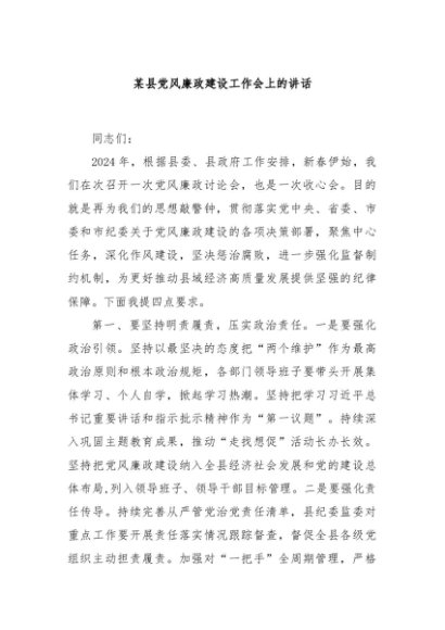 / 【七哥公文】2024年:某县党风廉政建设工作会上的讲话+更多免费公文+VX:QiGeGongWen2024
