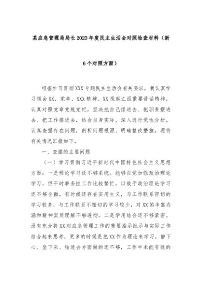 【七哥公文】2024年:某应急管理局局长2023年度民主生活会对照检查材料(新6个对照方面)+更多免费公文+VX:QiGeGongWen2024