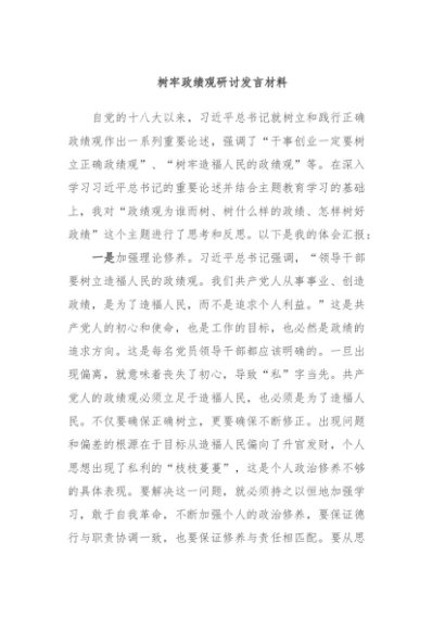 / 【七哥公文】2024年:树牢政绩观研讨发言材料+更多免费公文+VX:QiGeGongWen2024