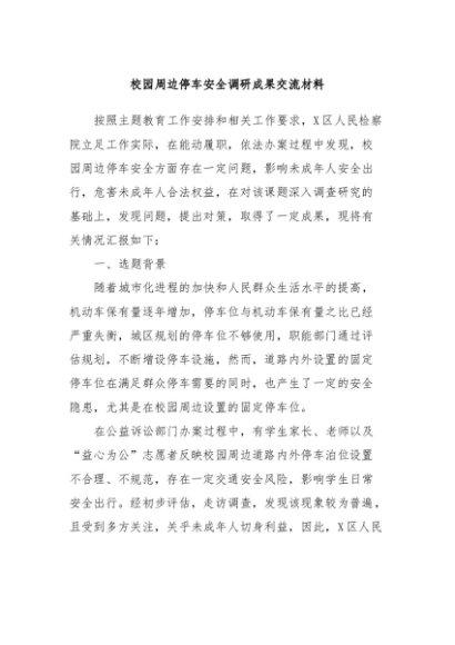 / 【七哥公文】2024年:校园周边停车安全调研成果交流材料+更多免费公文+VX:QiGeGongWen2024