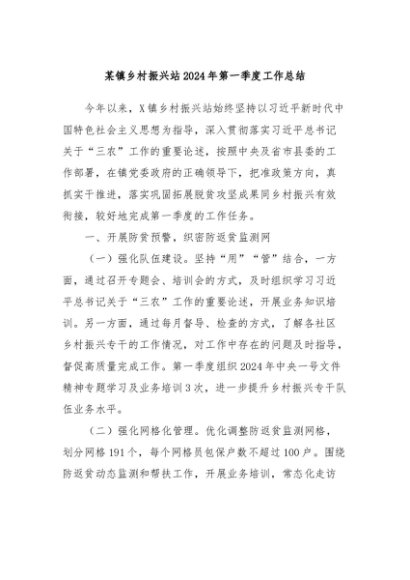 / 【七哥公文】2024年:某镇乡村振兴站2024年第一季度工作总结+更多免费公文+VX:QiGeGongWen2024