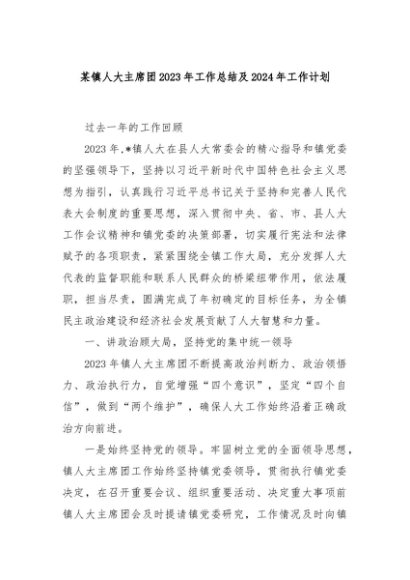 【七哥公文】2024年:某镇人大主席团2023年工作总结及2024年工作计划+更多免费公文+VX:QiGeGongWen2024