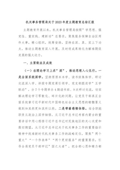 / 【七哥公文】2024年:机关事务管理局关于2023年度主题教育总结汇报+更多免费公文+VX:QiGeGongWen2024
