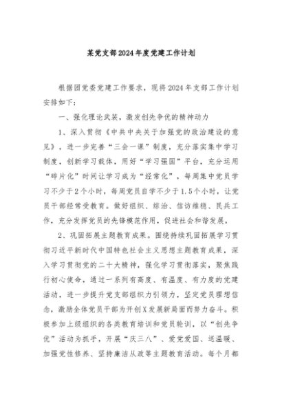 / 【七哥公文】2024年:某党支部2024年度党建工作计划+更多免费公文+VX:QiGeGongWen2024