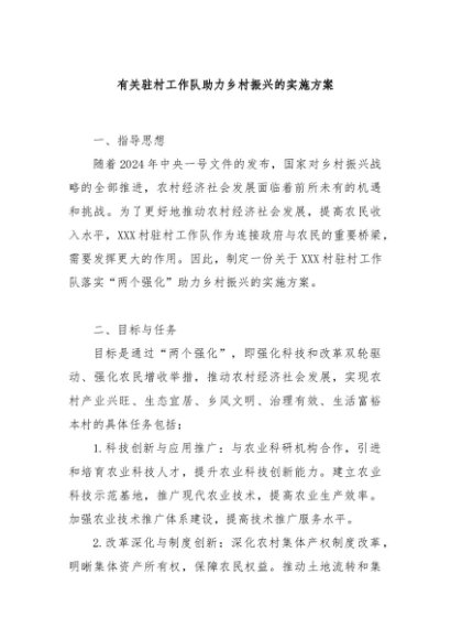 / 【七哥公文】2024年:有关驻村工作队助力乡村振兴的实施方案+更多免费公文+VX:QiGeGongWen2024