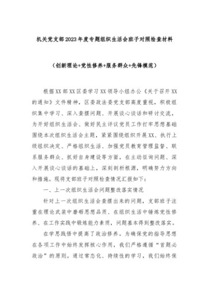 【七哥公文】2024年:机关党支部2023年度专题组织生活会班子对照检查材料(创新理论+党性修养+服务群众+先锋模范)+更多免费公文+VX:QiGeGongWen2024