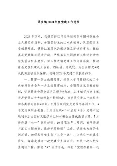 / 【七哥公文】2024年:某乡镇2023年度党建工作总结+更多免费公文+VX:QiGeGongWen2024