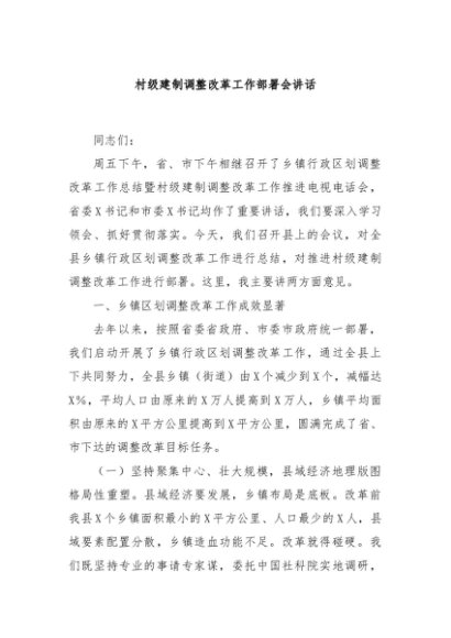 / 【七哥公文】2024年:村级建制调整改革工作部署会讲话+更多免费公文+VX:QiGeGongWen2024