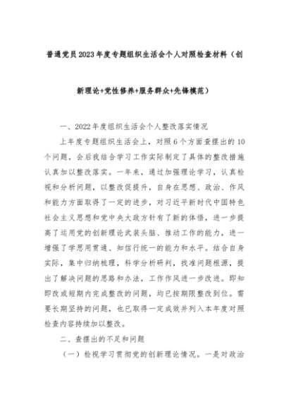 【七哥公文】2024年:普通党员2023年度专题组织生活会个人对照检查材料(创新理论+党性修养+服务群众+先锋模范)+更多免费公文+VX:QiGeGongWen2024