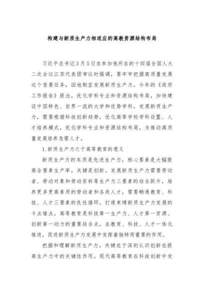 / 【七哥公文】2024年:构建与新质生产力相适应的高教资源结构布局+更多免费公文+VX:QiGeGongWen2024