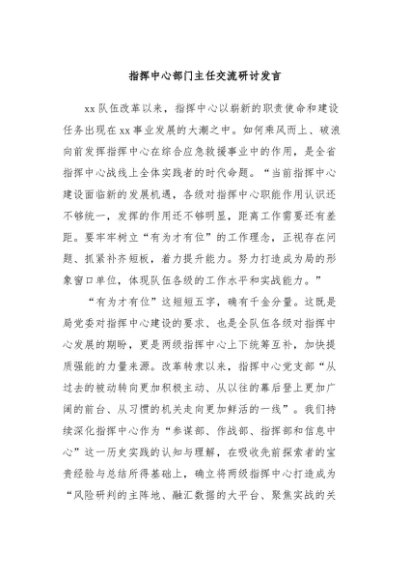 / 【七哥公文】2024年:指挥中心部门主任交流研讨发言+更多免费公文+VX:QiGeGongWen2024
