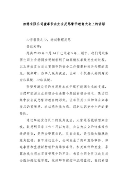 / 【七哥公文】2024年:旅游有限公司董事长在安全反思警示教育大会上的讲话+更多免费公文+VX:QiGeGongWen2024