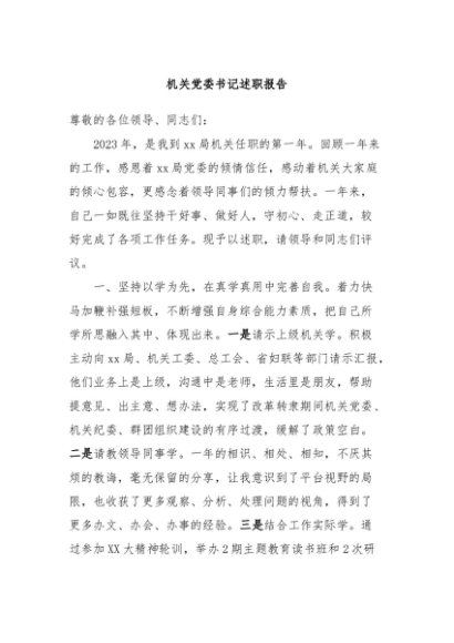 / 【七哥公文】2024年:机关党委书记述职报告+更多免费公文+VX:QiGeGongWen2024