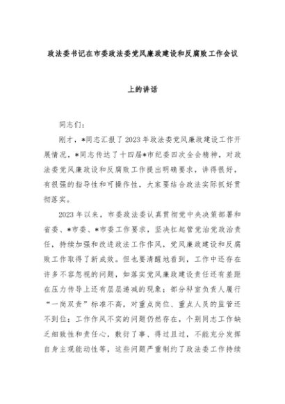 【七哥公文】2024年:政法委书记在市委政法委党风廉政建设和反腐败工作会议上的讲话+更多免费公文+VX:QiGeGongWen2024