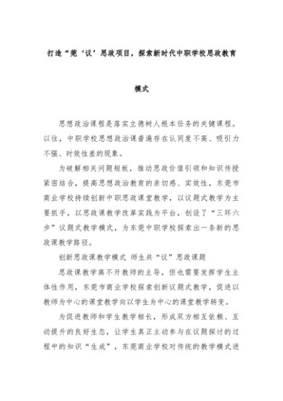【七哥公文】2024年:打造“莞‘议’思政项目,探索新时代中职学校思政教育模式+更多免费公文+VX:QiGeGongWen2024