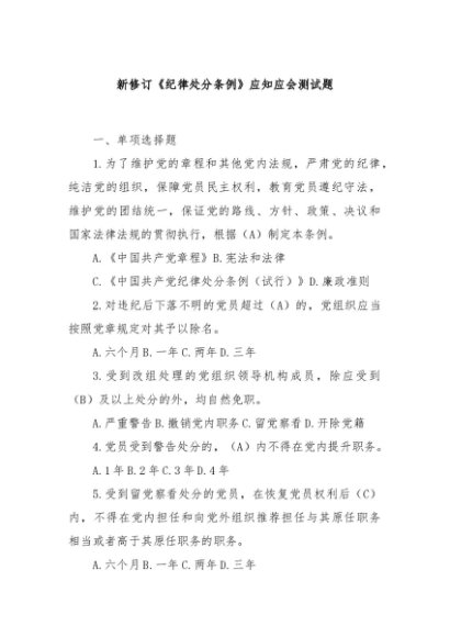 / 【七哥公文】2024年:新修订《纪律处分条例》应知应会测试题+更多免费公文+VX:QiGeGongWen2024