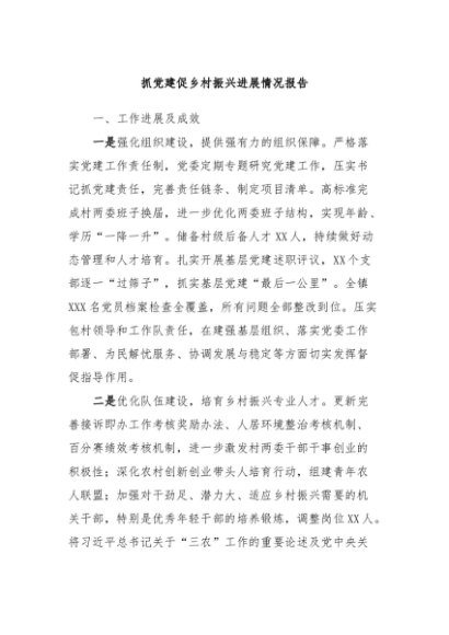 / 【七哥公文】2024年:抓党建促乡村振兴进展情况报告+更多免费公文+VX:QiGeGongWen2024