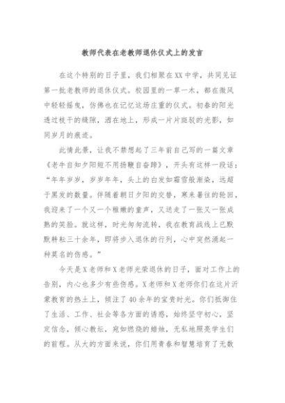 【七哥公文】2024年:教师代表在老教师退休仪式上的发言+更多免费公文+VX:QiGeGongWen2024