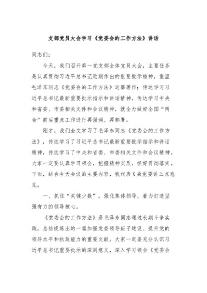 / 【七哥公文】2024年:支部党员大会学习《党委会的工作方法》讲话+更多免费公文+VX:QiGeGongWen2024