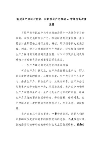 【七哥公文】2024年:新质生产力研讨发言:以新质生产力推动xx市经济高质量发展+更多免费公文+VX:QiGeGongWen2024