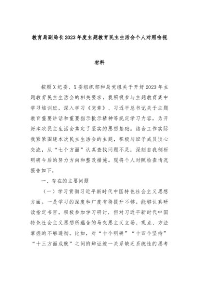 【七哥公文】2024年:教育局副局长2023年度主题教育民主生活会个人对照检视材料+更多免费公文+VX:QiGeGongWen2024