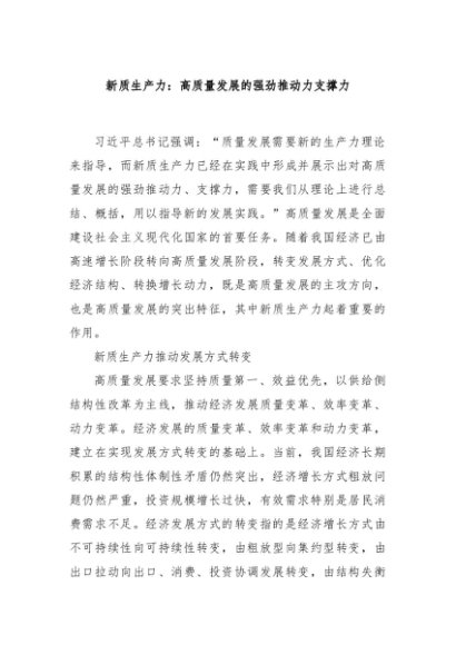 / 【七哥公文】2024年:新质生产力:高质量发展的强劲推动力支撑力+更多免费公文+VX:QiGeGongWen2024