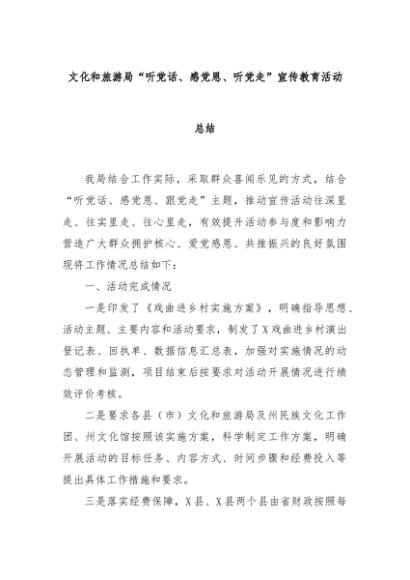 【七哥公文】2024年:文化和旅游局“听党话、感党恩、听党走”宣传教育活动总结+更多免费公文+VX:QiGeGongWen2024